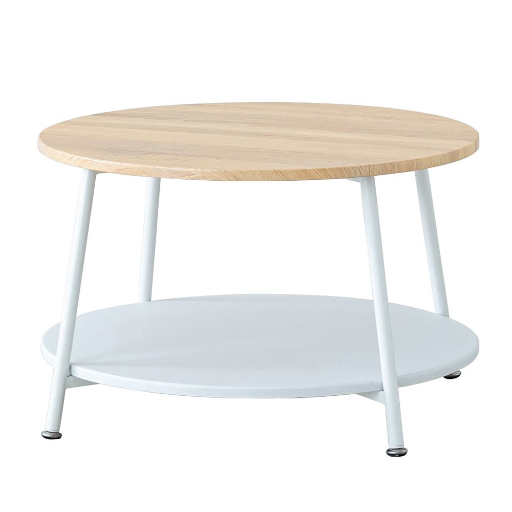 ヴィンテージ棚付リビングテーブル サイドテーブル 木製 木目 丸 モダン ひとり暮らし 収納