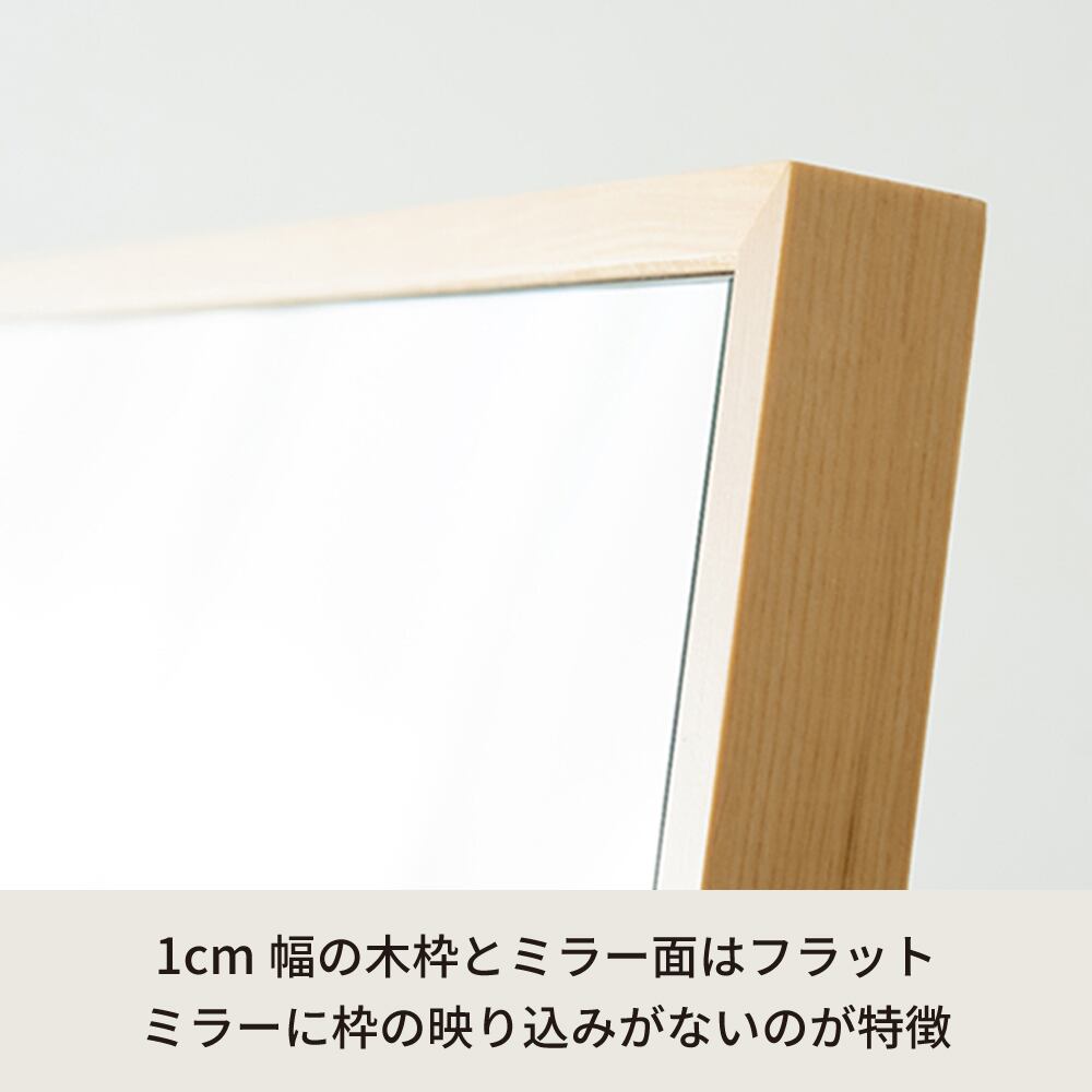 1cm幅の木枠とミラー面は、ほぼフラットで見た目に美しく、