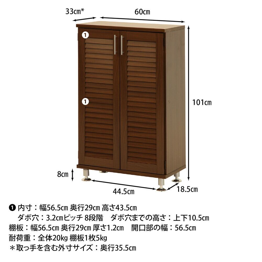 耐荷重目安:全体20kg、棚板一枚あたり5kg