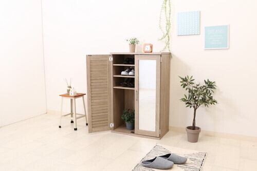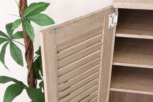 通気性の良いルーバー仕様!ミラー付きシューズボックス