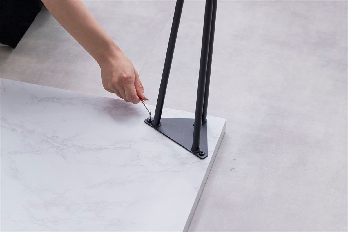 美しい大理石調の天板×ブラックスチール脚のデザインが特徴的な『Melia(メリア)』ダイニングテーブル