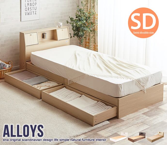 【セミダブル】Alloys(アロイス)引出し付ベッド オリジナルポケットコイル